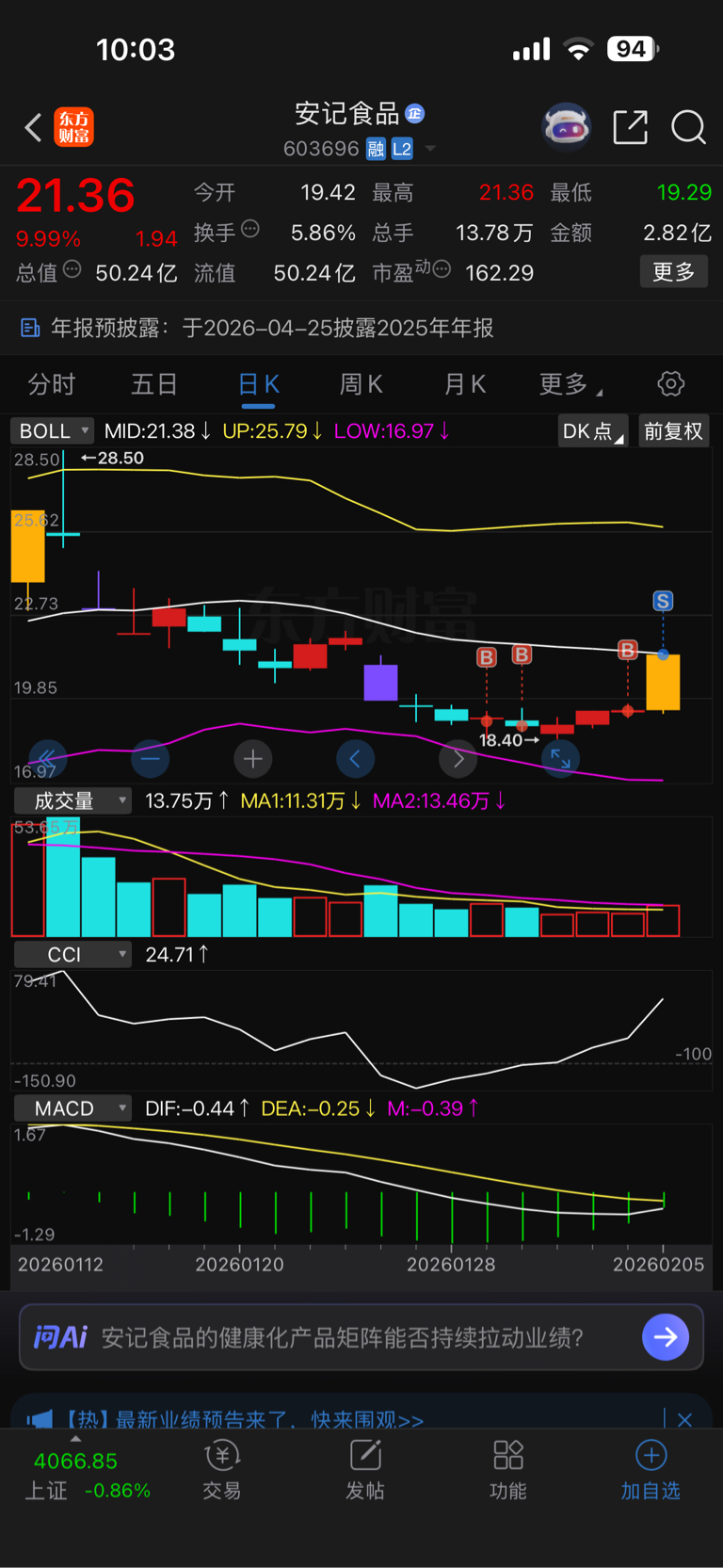 $安记食品(SH603696)$ 谢谢让我赚钱,再见