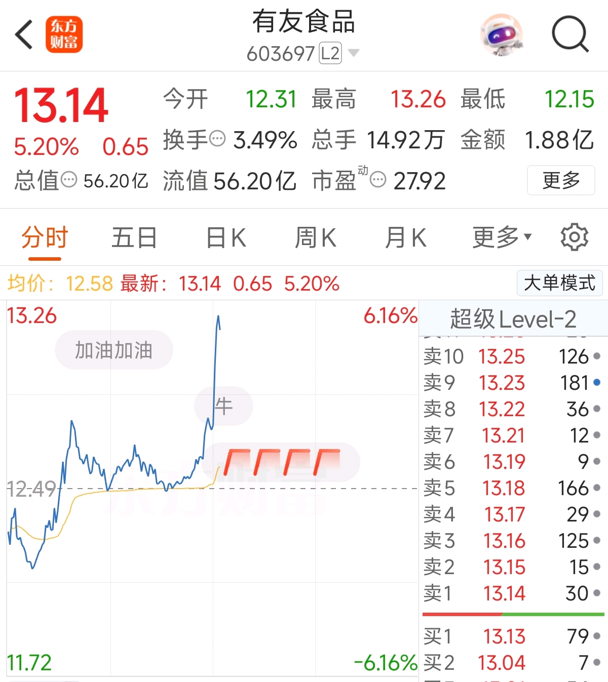 $有友食品(SH603697)$ 大家提前1314520快乐