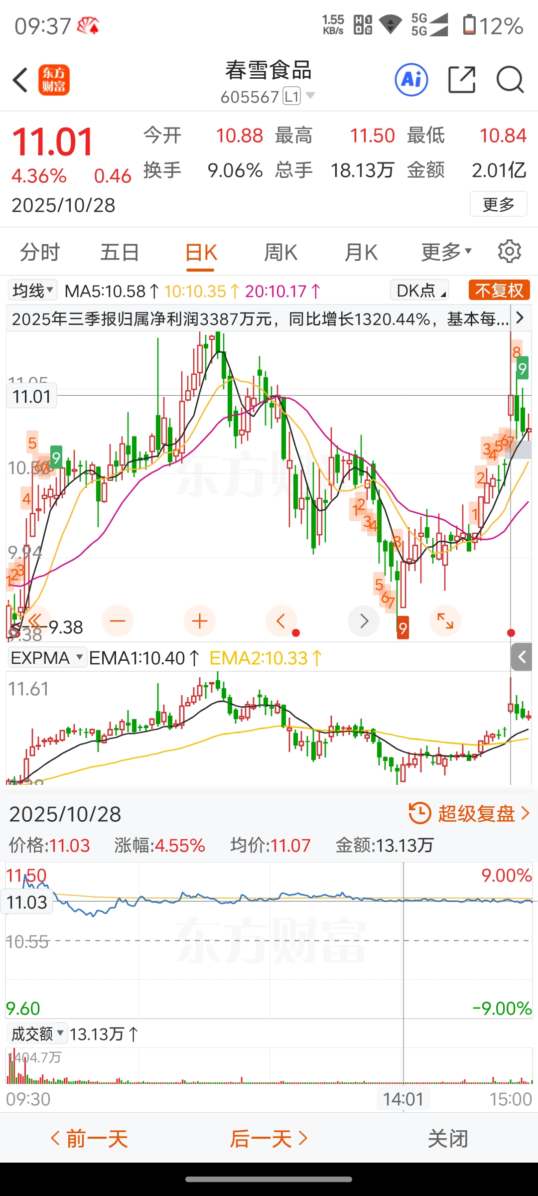 $有友食品(SH603697)$ 我卖出的逻辑是根据前几天春雪来的,竞价跑也是因为到手的红才是真的,落袋为安。但如果涨停的话,可以根据去年发布3季报的走势来看,如果真跟去年一样,恭喜还在里面的兄弟们还能吃几个涨停
