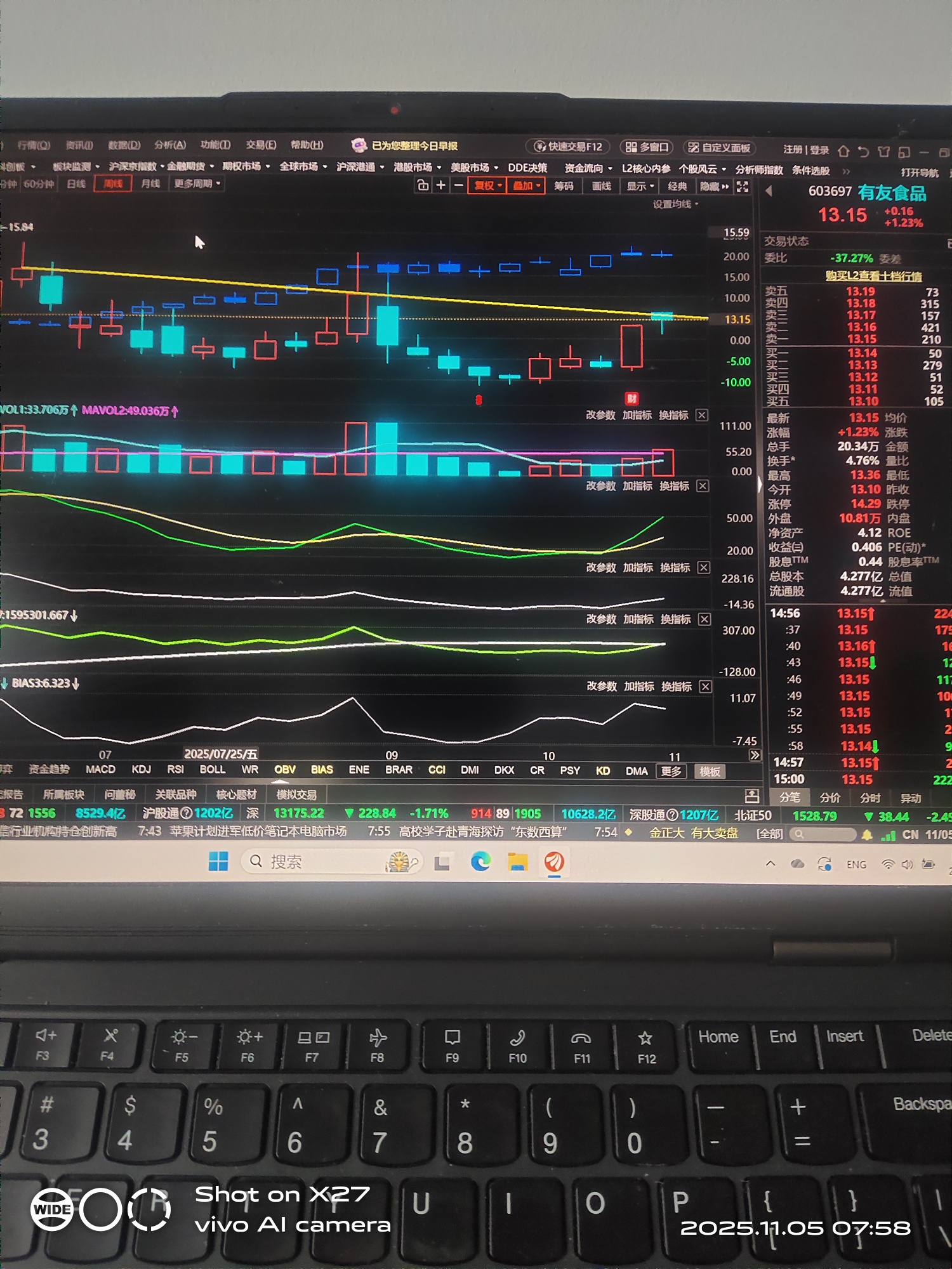 $有友食品(SH603697)$ 周线受压力线反压,待突破。看好后市。(答复淅江网友)