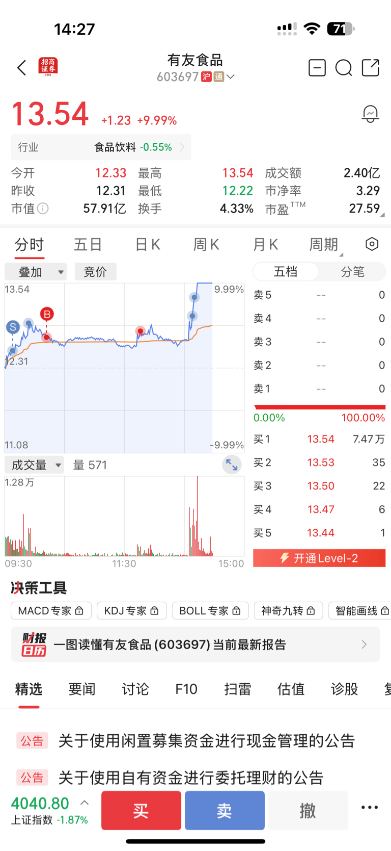 $有友食品(SH603697)$ 我做点t容易吗? 我拿了你几个月就这样帅我下车?