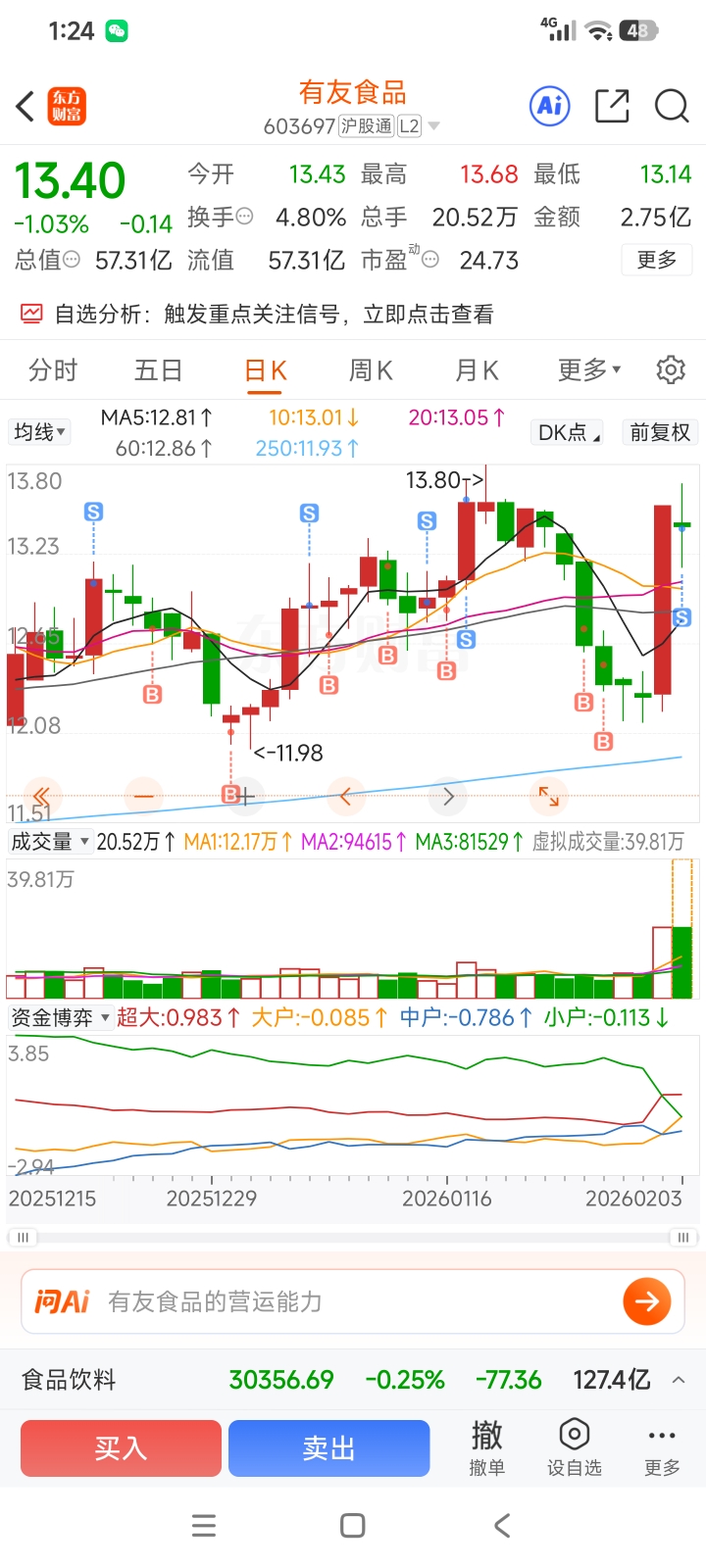 $有友食品(SH603697)$ 直觉告诉我不应该减的,但是被折磨多了还是减了,这就是人性吧,人无法做到完全战胜人性,哦不,圣人可以