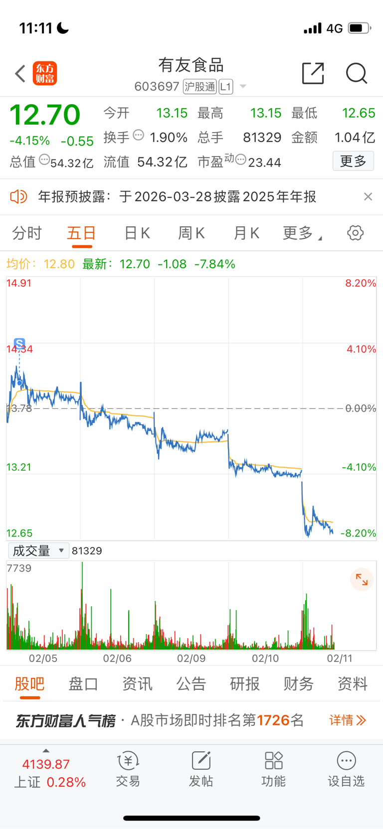 $有友食品(SH603697)$ 我的鸡爪犯天条了??
