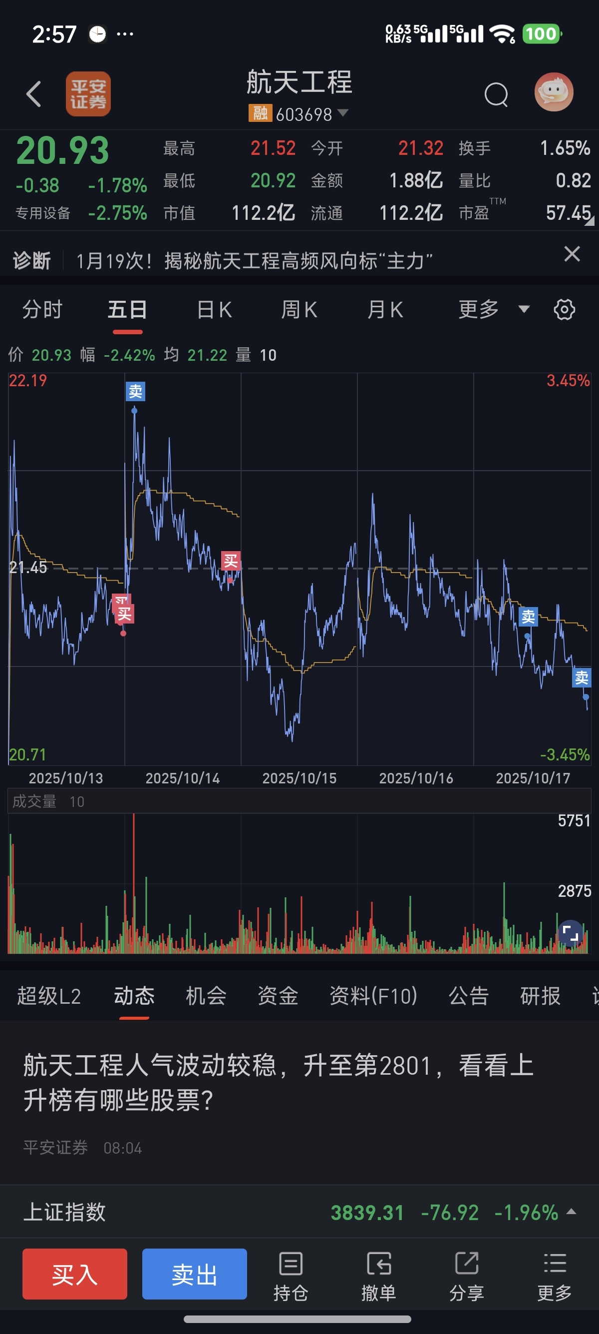 $航天工程(SH603698)$ 本来挣钱的,现在亏520块跑了,唉!呀