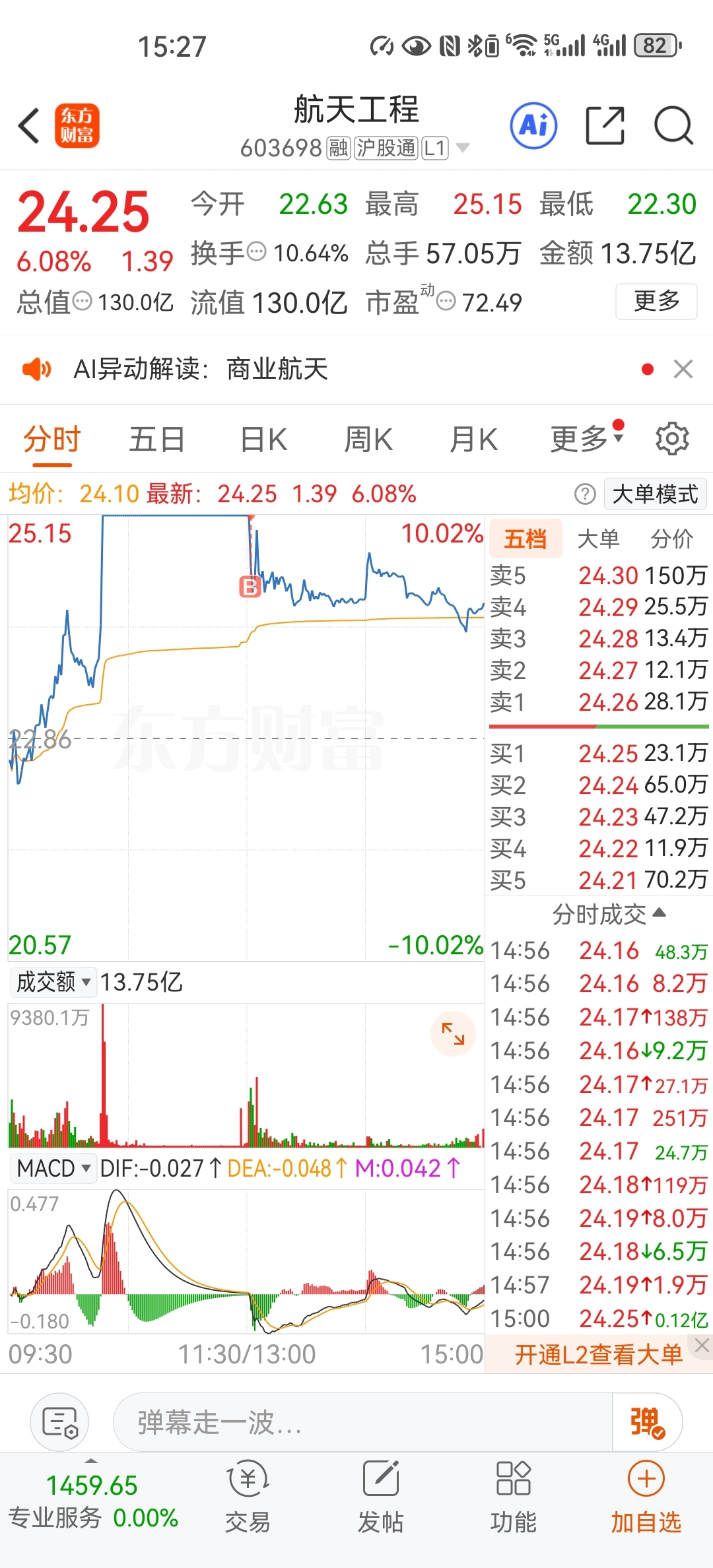 $航天工程(SH603698)$ 又套住了,大盘拉起来了都不封板,明天反包吧
