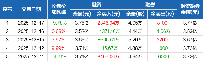 航天工程:融资余额3.75亿元,创历史新高(12-17)
