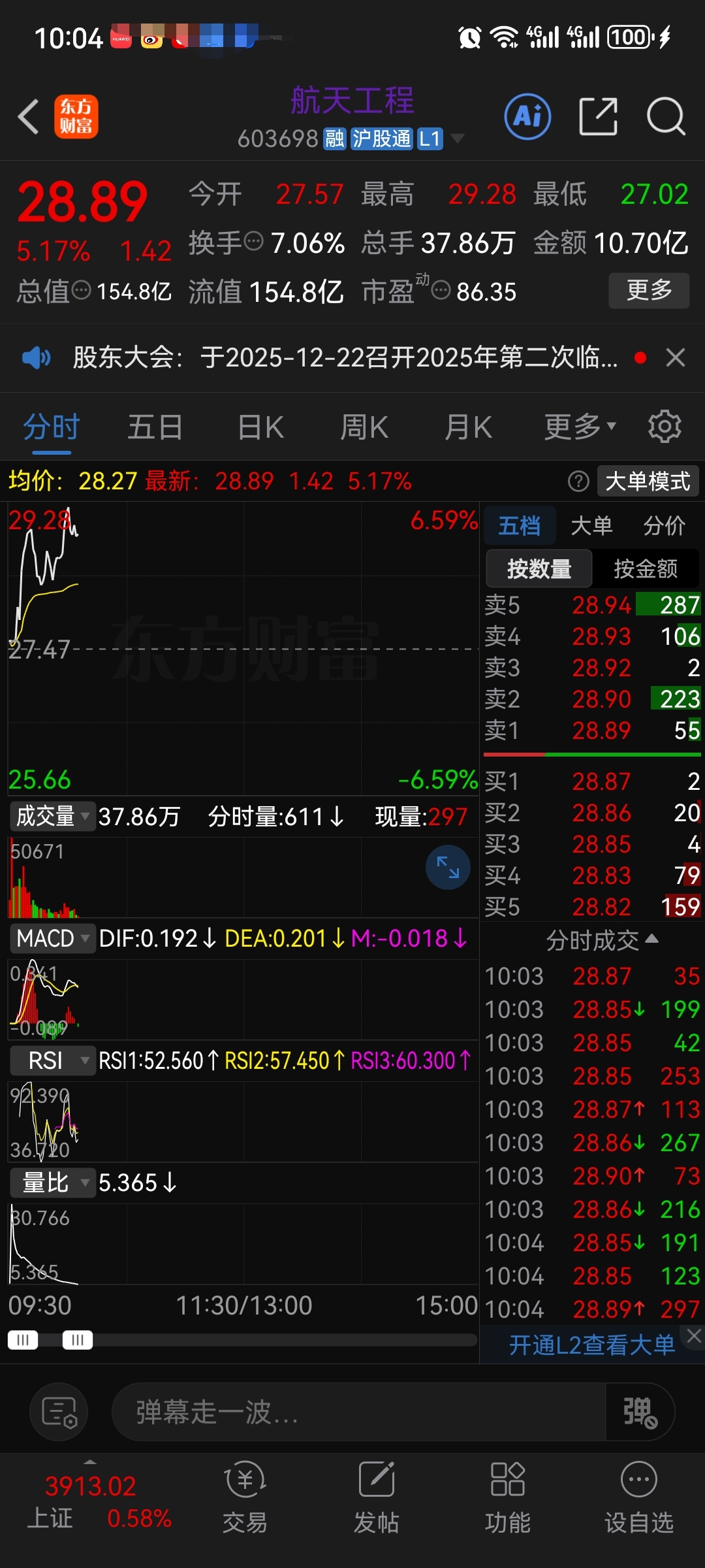 603698航天工程量价异动强弱看28.20元得失