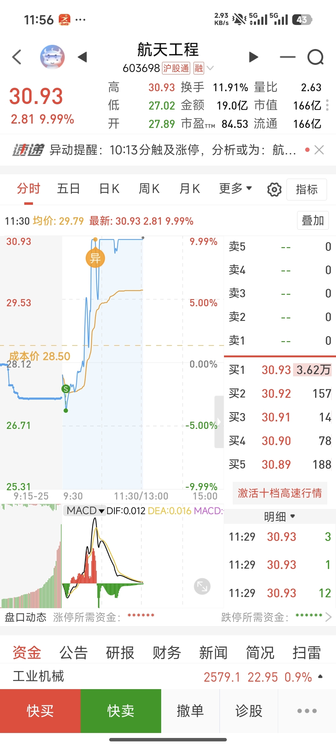 $航天工程(SH603698)$ 没错,早上就是我压砸盘不让涨