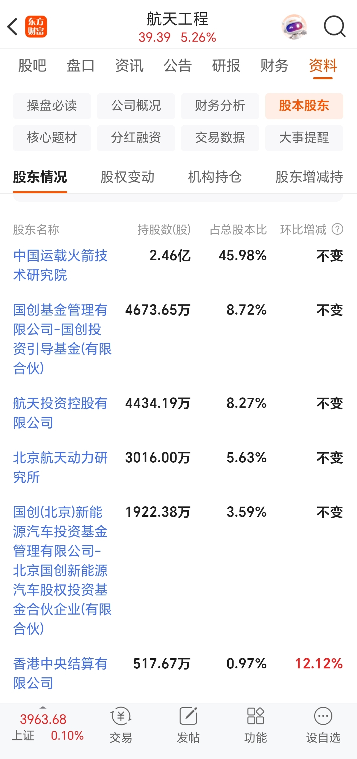 $航天工程(SH603698)$ 最大股东中国运载火箭技术研究院