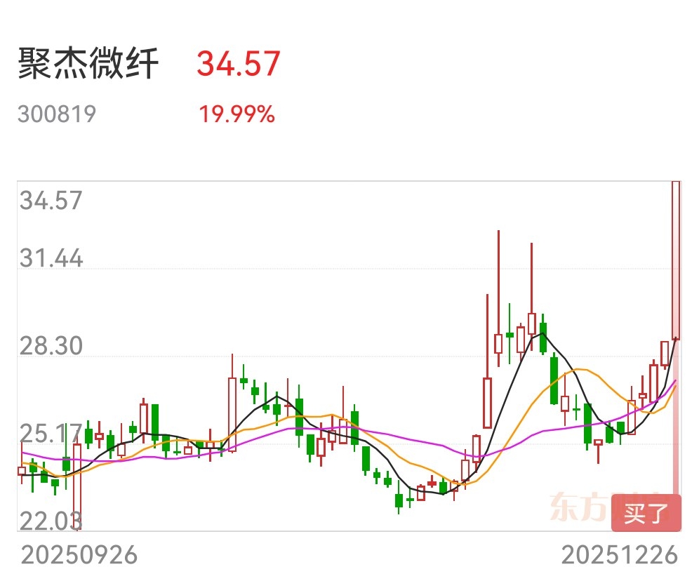 买入九鼎新材3200万、买入标榜股份1300万、买入聚杰微纤1200万。