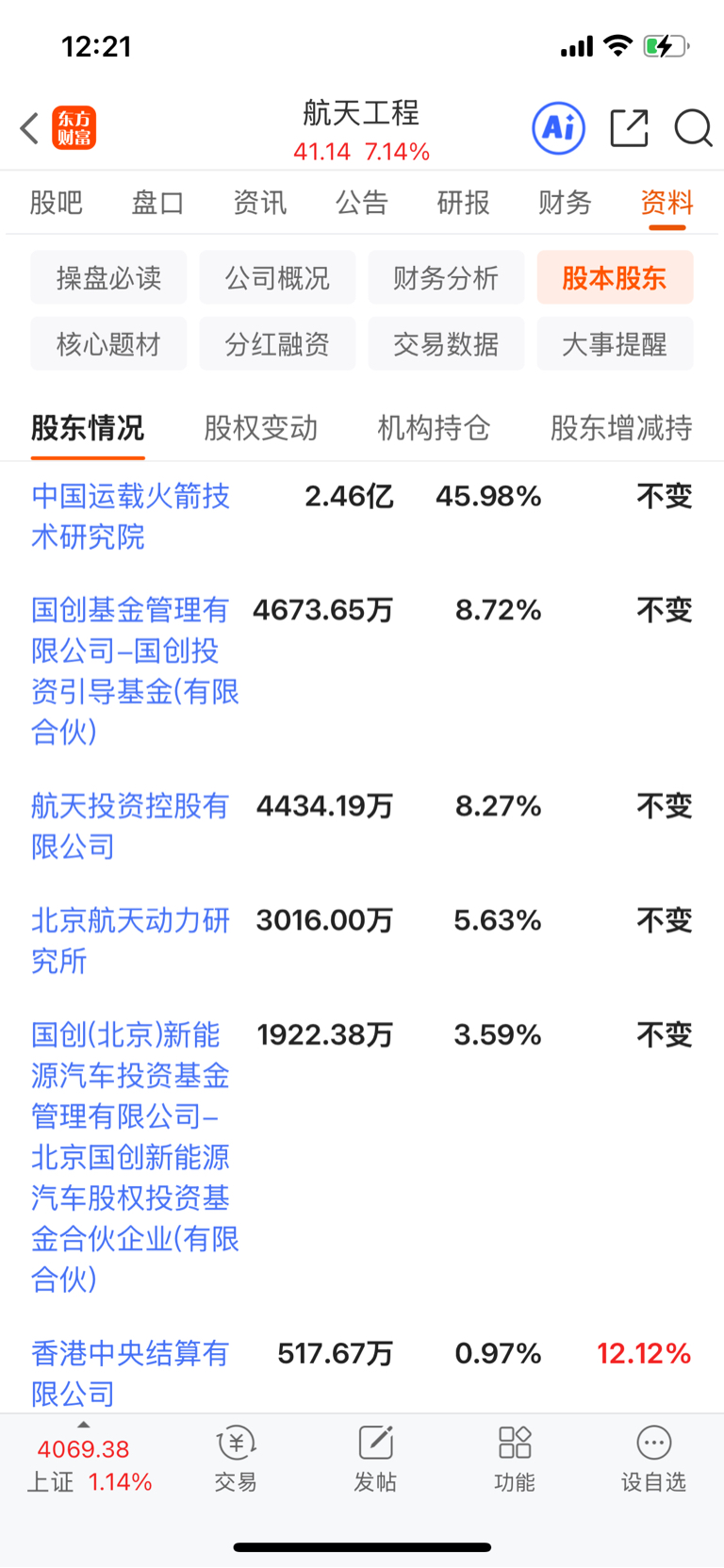 $航天工程(SH603698)$ 就这样的股东谁会卖呐