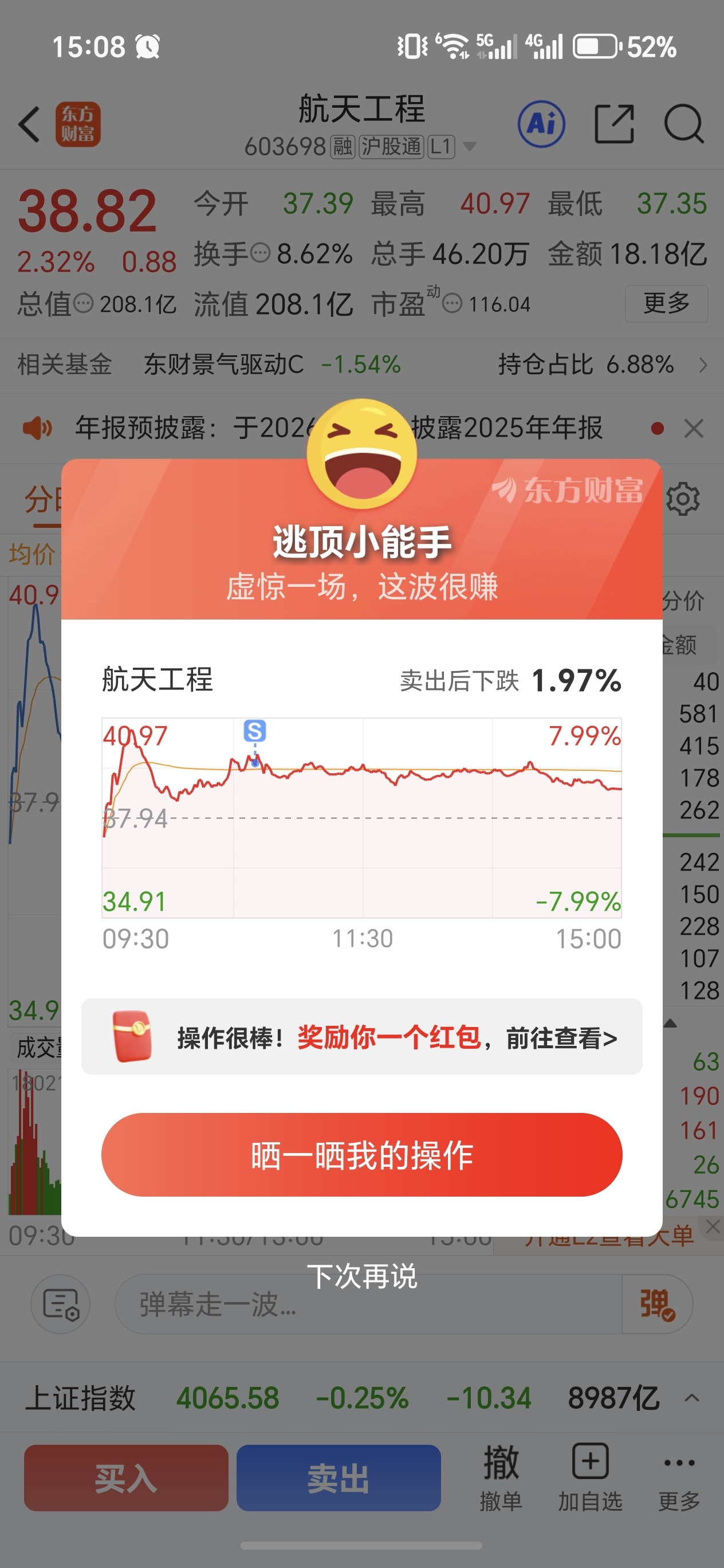 $航天工程(SH603698)$ 这玩意没气质,赚点差价就跑