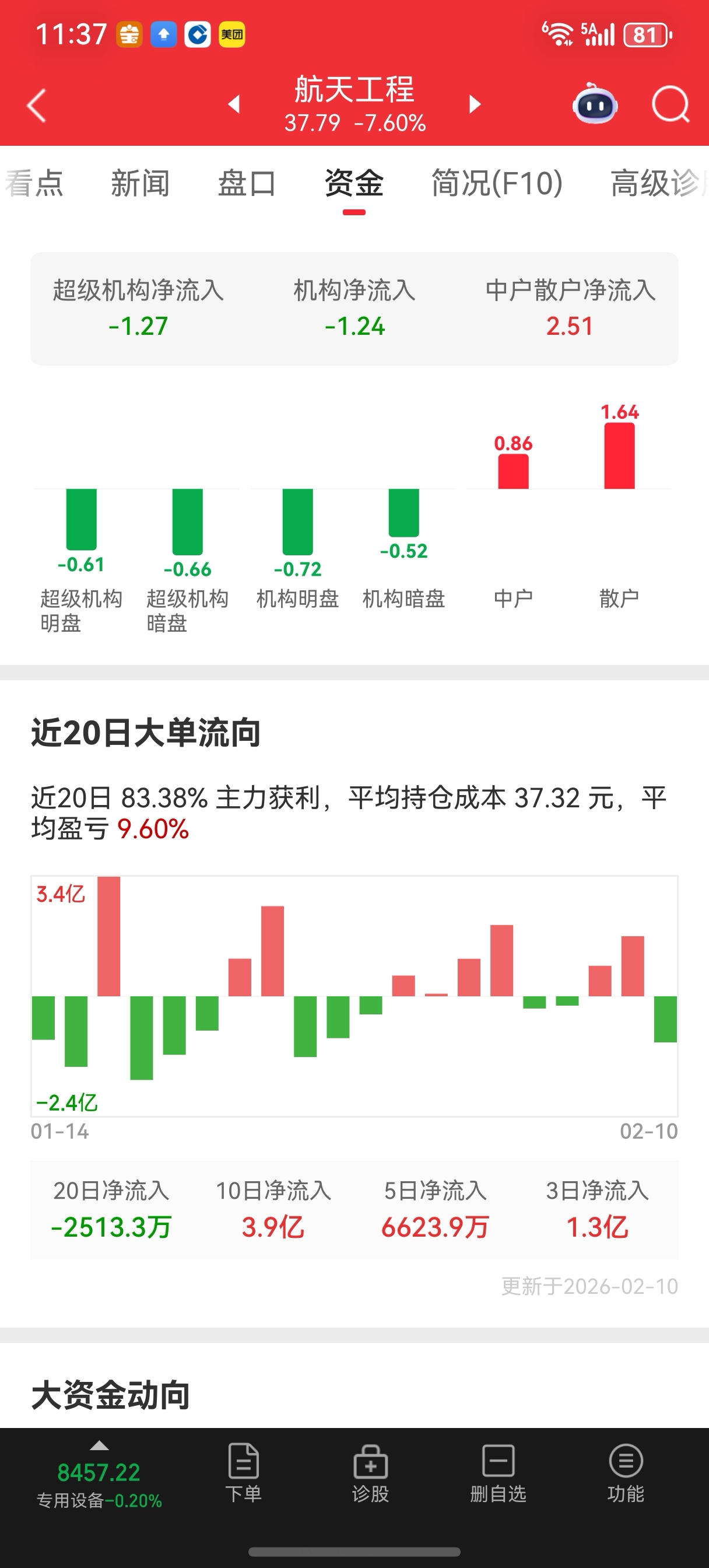 $航天工程(SH603698)$ 主力一路出货,去留大家决定了