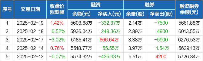纽威股份:融资净偿还332.37万元,融资余额5603.68万元(02-19)