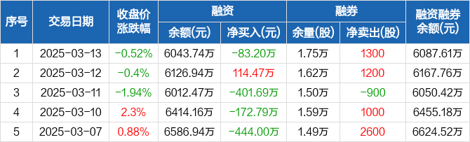 纽威股份:融资净偿还83.2万元,融资余额6043.74万元(03-13)