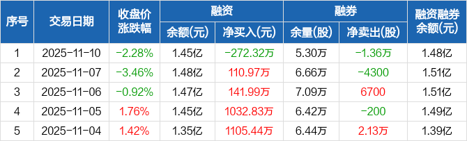 纽威股份:融资净偿还272.32万元,融资余额1.45亿元(11-10)