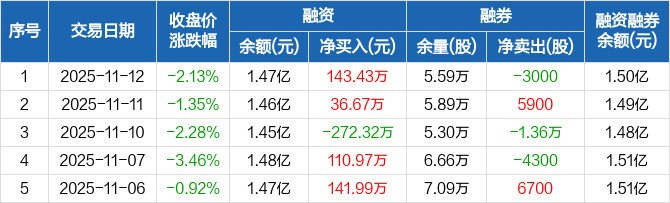 纽威股份:融资净买入143.43万元,融资余额1.47亿元(11-12)