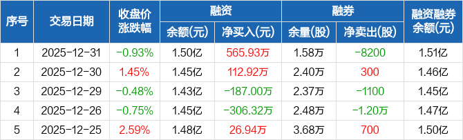 纽威股份:融资净买入565.93万元,融资余额1.5亿元(12-31)