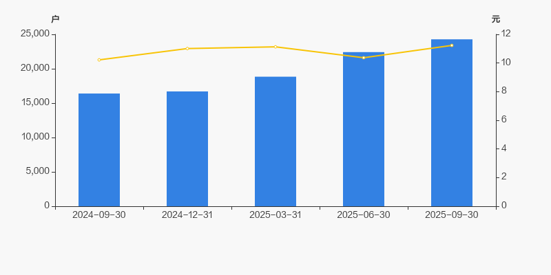 2024年9月30日至今,公司股东户数显著增长,区间涨幅为48.08%。2024年9月30日至2025年9月30日区间股价上涨9.88%。