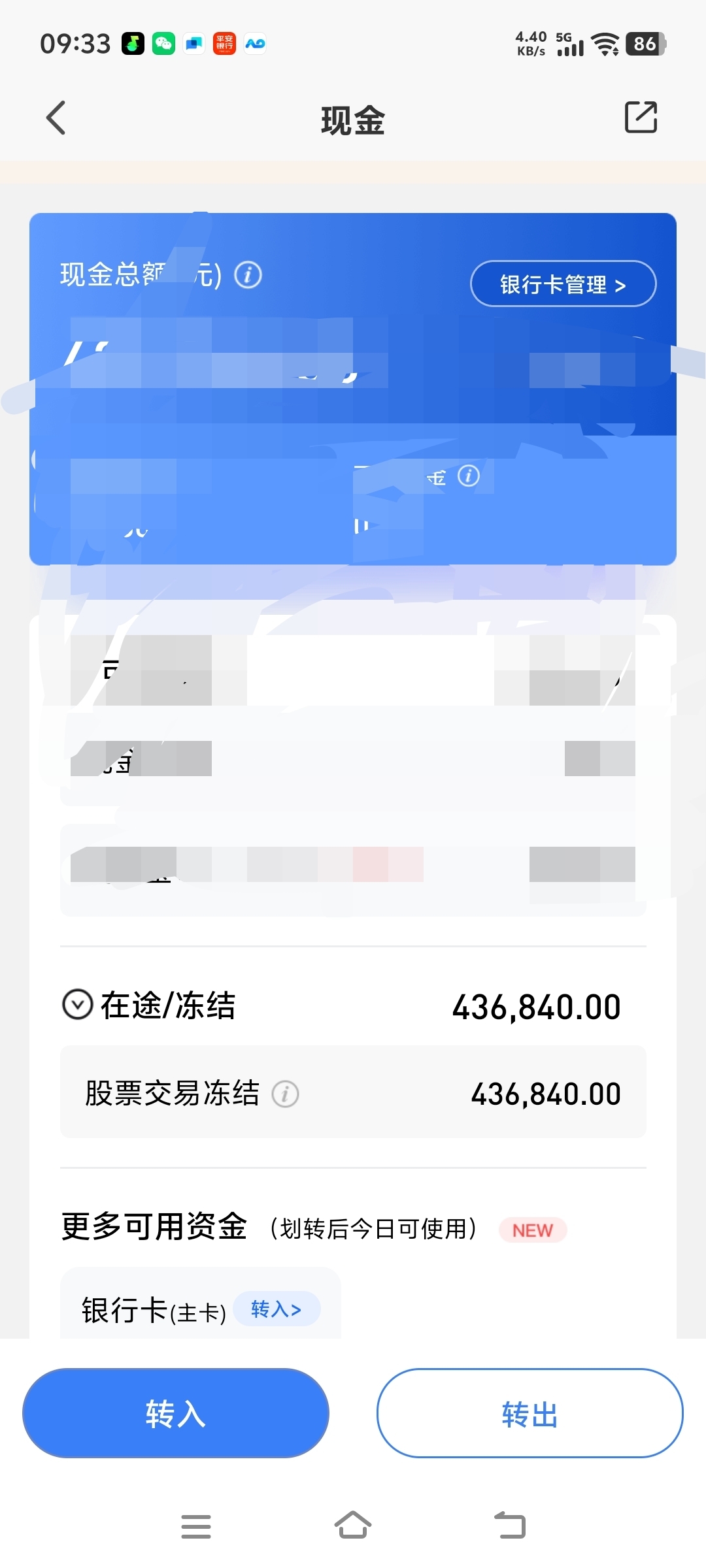 我擦,早上打新了北交所,资金冻结,没钱补仓了。