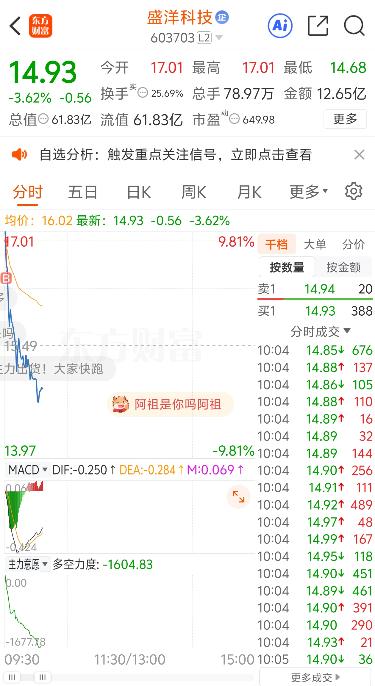 $盛洋科技(SH603703)$ 唉愿赌服输,落子无悔。