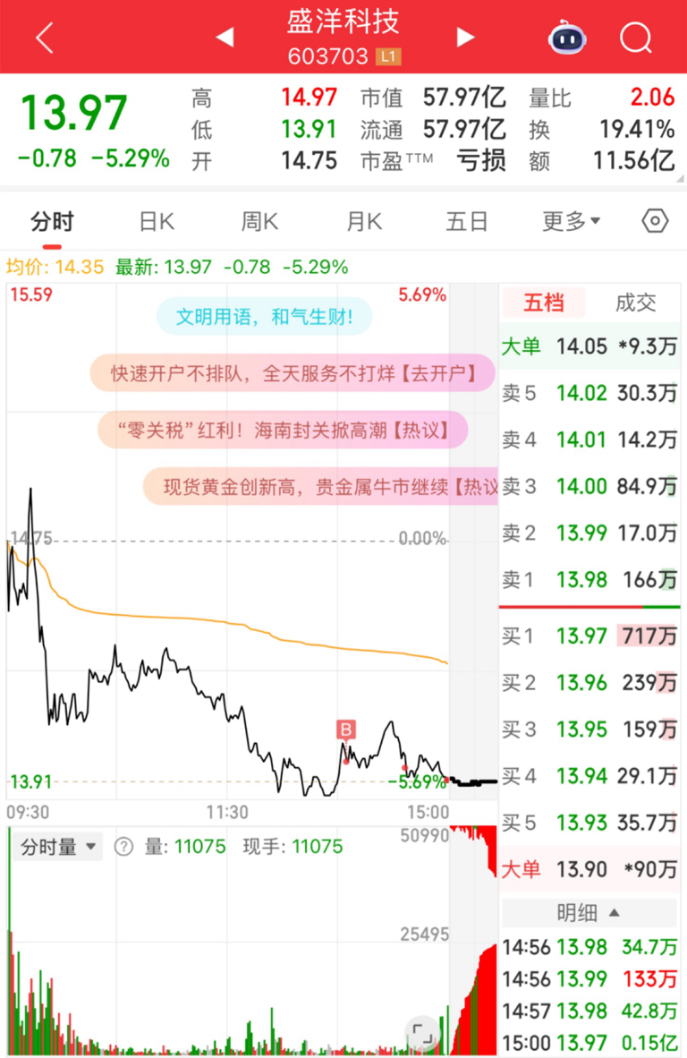 $盛洋科技(SH603703)$ 明天能活着出来么