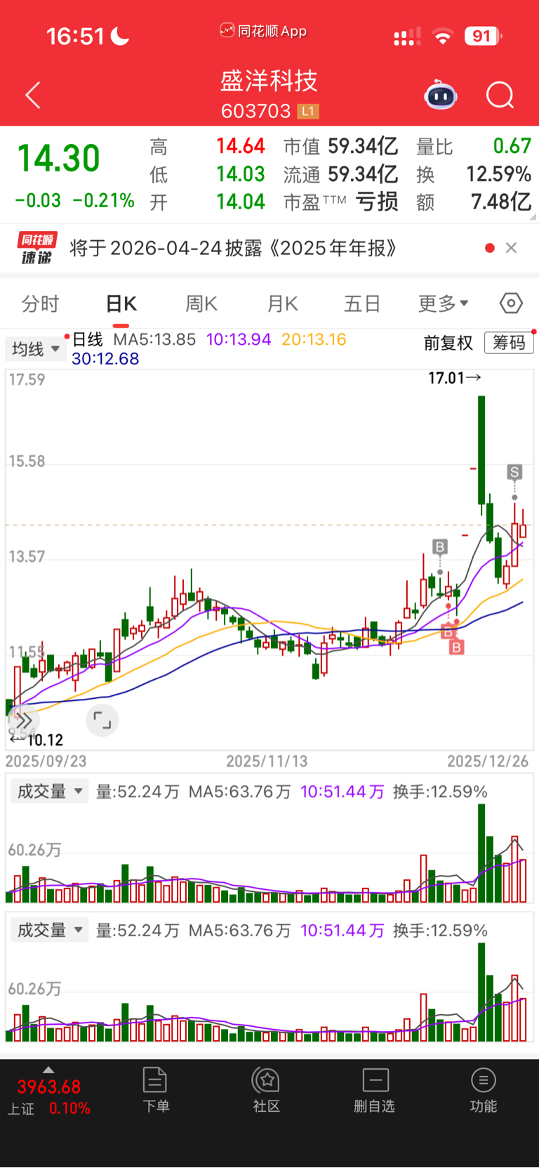 $盛洋科技(SH603703)$ 三板没走,25号走的,割了就发特大利好