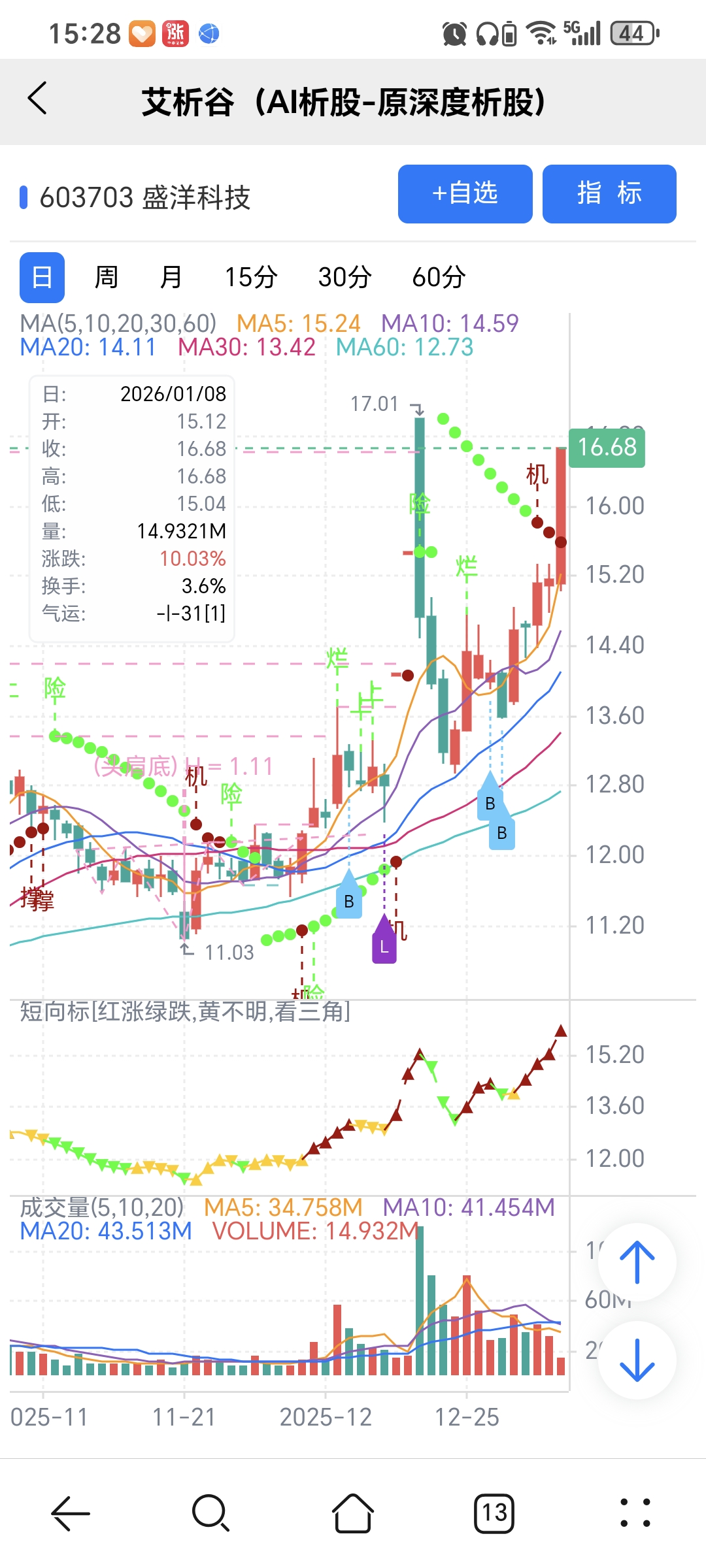 AI模型选股,量化指标识别关键点,简单技术分析确定买卖点,结合量化和人工综合运用,才能有优势。 盛洋科技