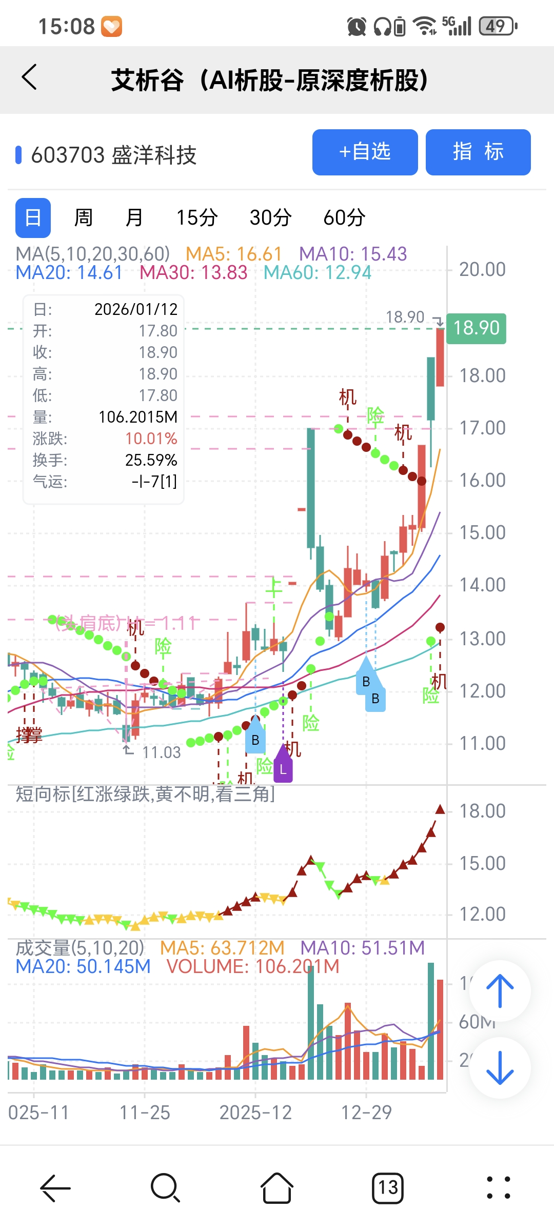 AI模型选股,量化指标识别关键点,简单技术分析确定买卖点,结合量化和人工综合运用,才能有优势。 盛洋科技