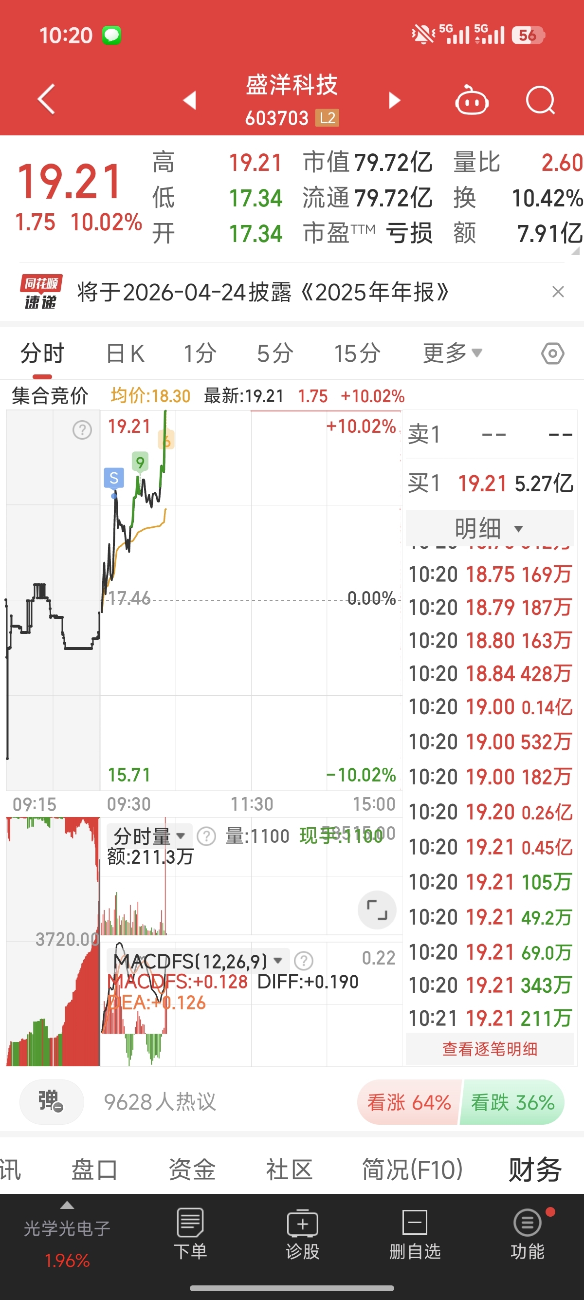 $盛洋科技(SH603703)$ 全仓到手25个点,知足了,走了