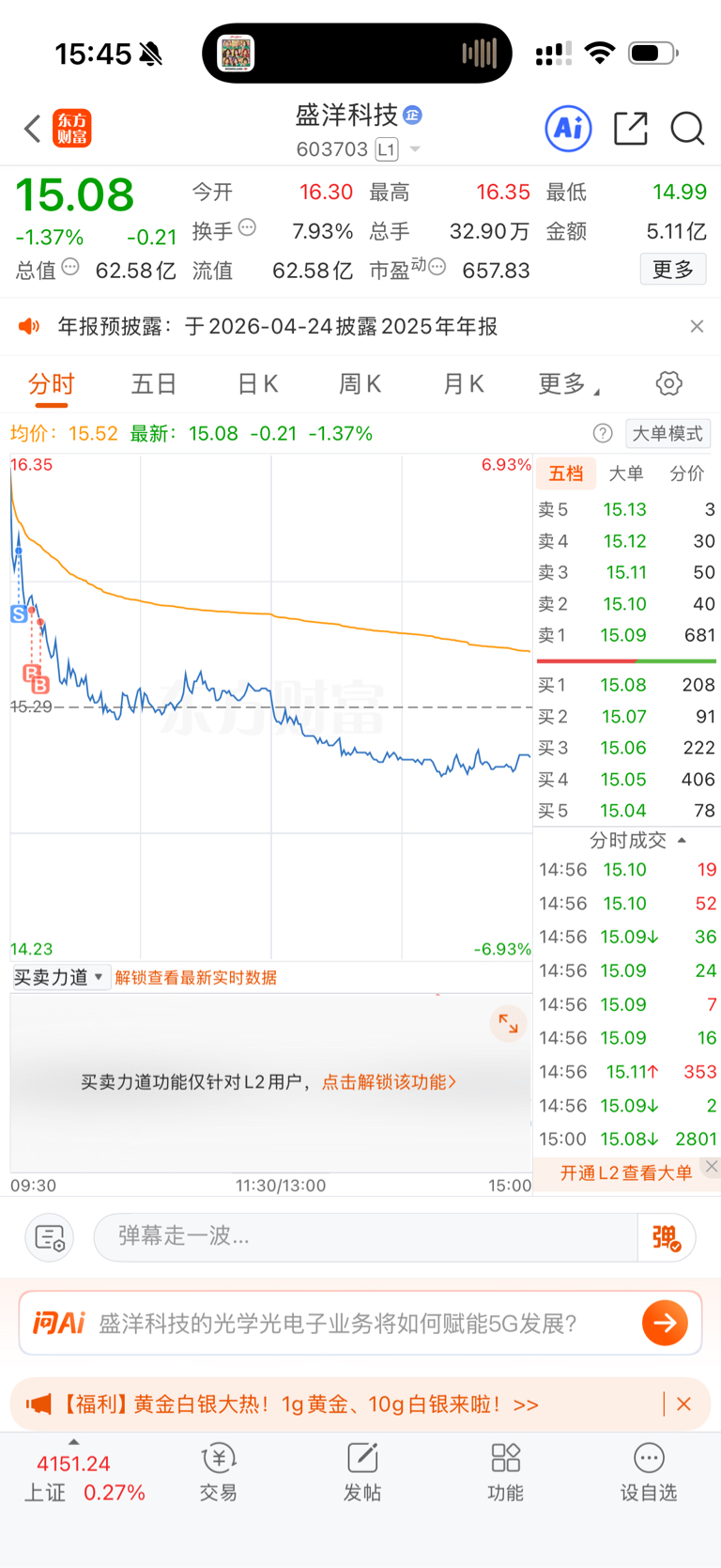$盛洋科技(SH603703)$ 什么玩意 永远不能相信瘟羊的高开