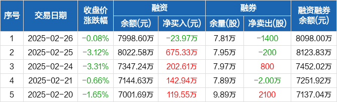 健友股份:融资净偿还23.97万元,融资余额7998.6万元(02-26)