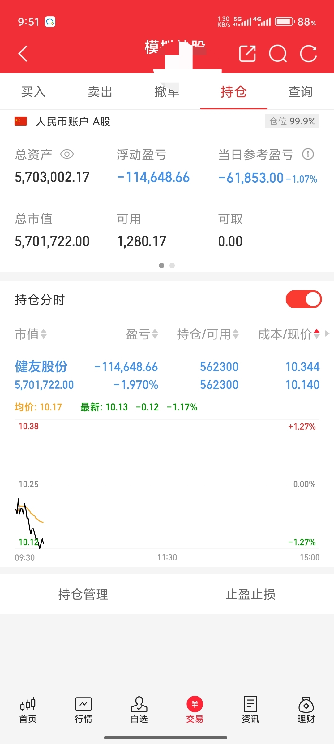 $健友股份(SH603707)$ 大家一起晒单,让主力把股价砸破位