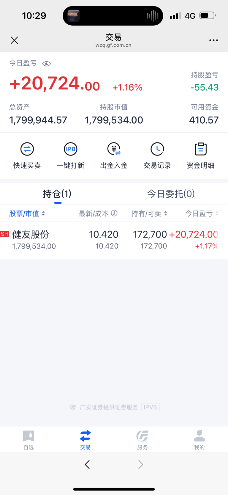 $健友股份(SH603707)$ 健友账户回本了,不容易阿