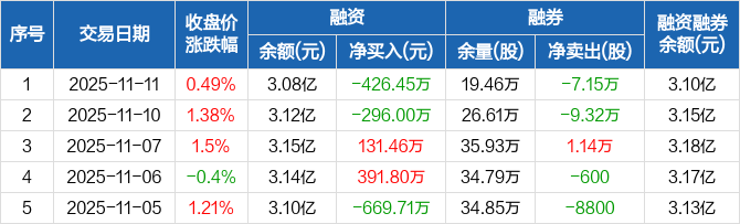 健友股份:融资净偿还426.45万元,融资余额3.08亿元(11-11)