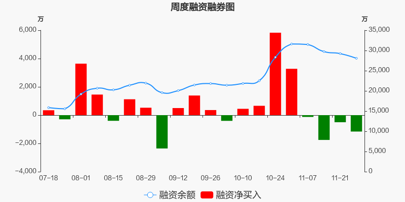 健友股份本周(2025/11/24-2025/11/28)累计跌幅达1.52%,截至11月28日最新股价报收9.69元。从增量上来看,11月24日至11月28日融资买入交易规模5187.05万元,融资偿还规模6346.61万元,期内融资净偿还1159.56万元。从存量上来看,截止11月30日,健友股份融资融券余额2.82亿元,其中融资余额规模2.81亿元,融券余额规模124.03万元。