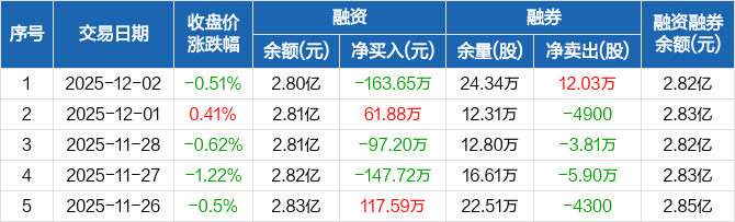 健友股份:融资净偿还163.65万元,融资余额2.8亿元(12-02)