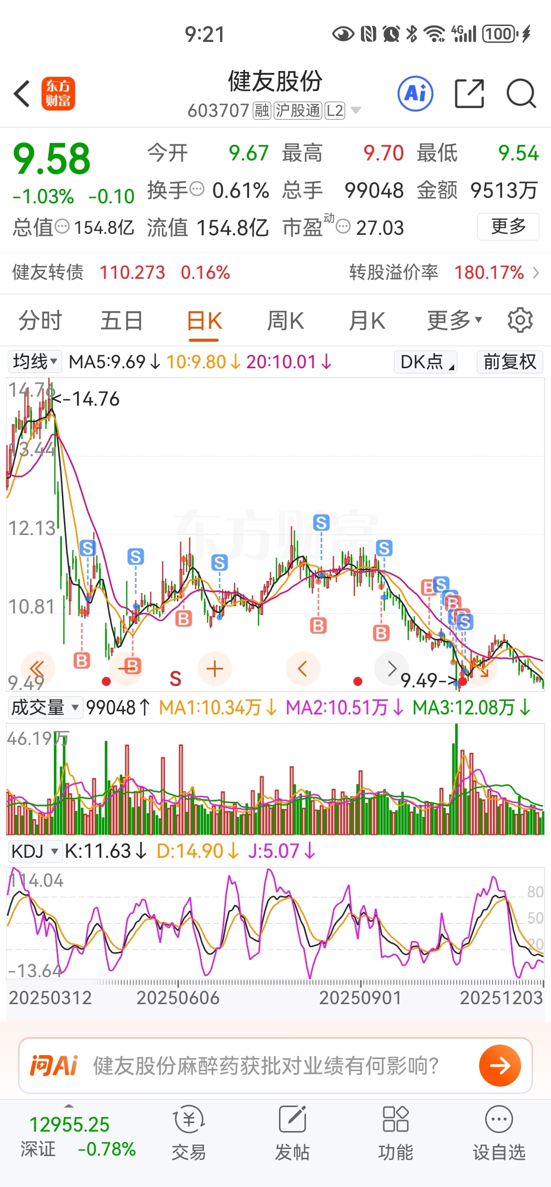 $健友股份(SH603707)$ 为什么一直跌,满仓200多万,亏了20个点,又不愿意卖。怎么办