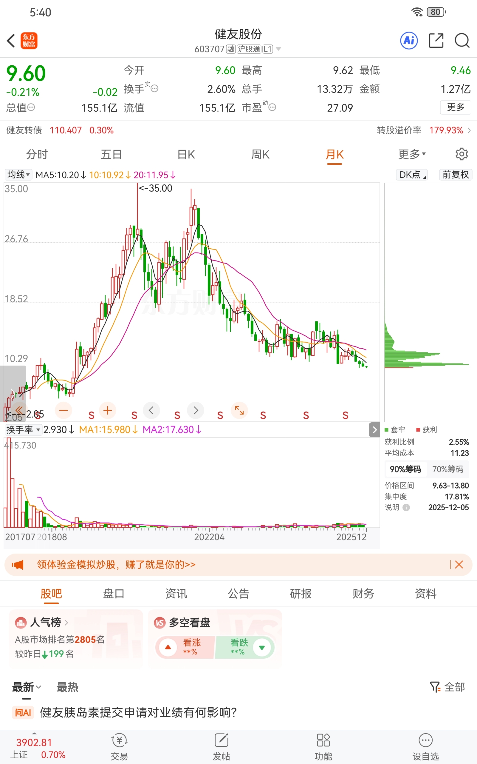 $健友股份(SH603707)$ 这公司有点万科的味道,我怀疑有雷,因为他的兄弟江苏吴中已经退市了!