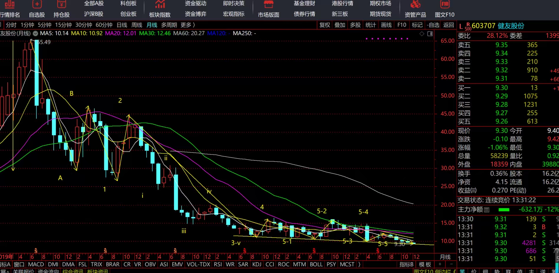 波浪理论显示,健友股份经过长达66个月二万五千里熊市路程的下跌,近期已经跌至底部