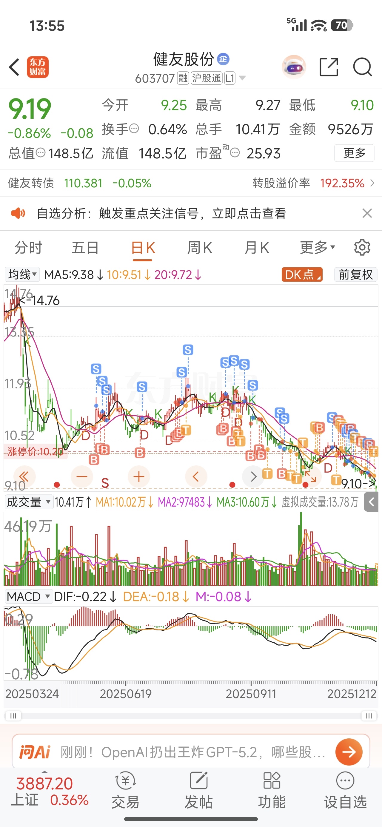 $健友股份(SH603707)$
