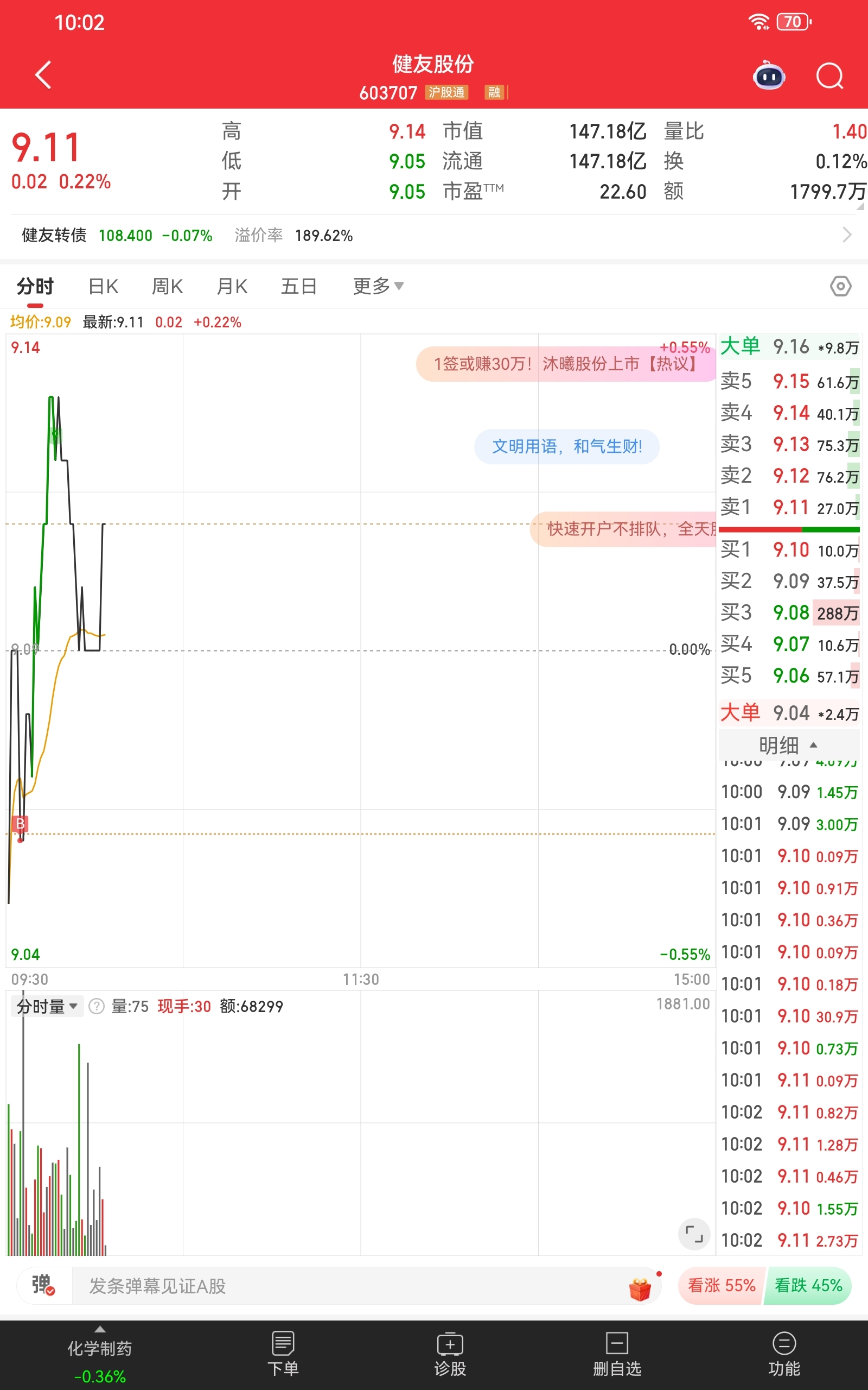 $健友股份(SH603707)$ 9.06继续加仓,不吃庄肉誓不还