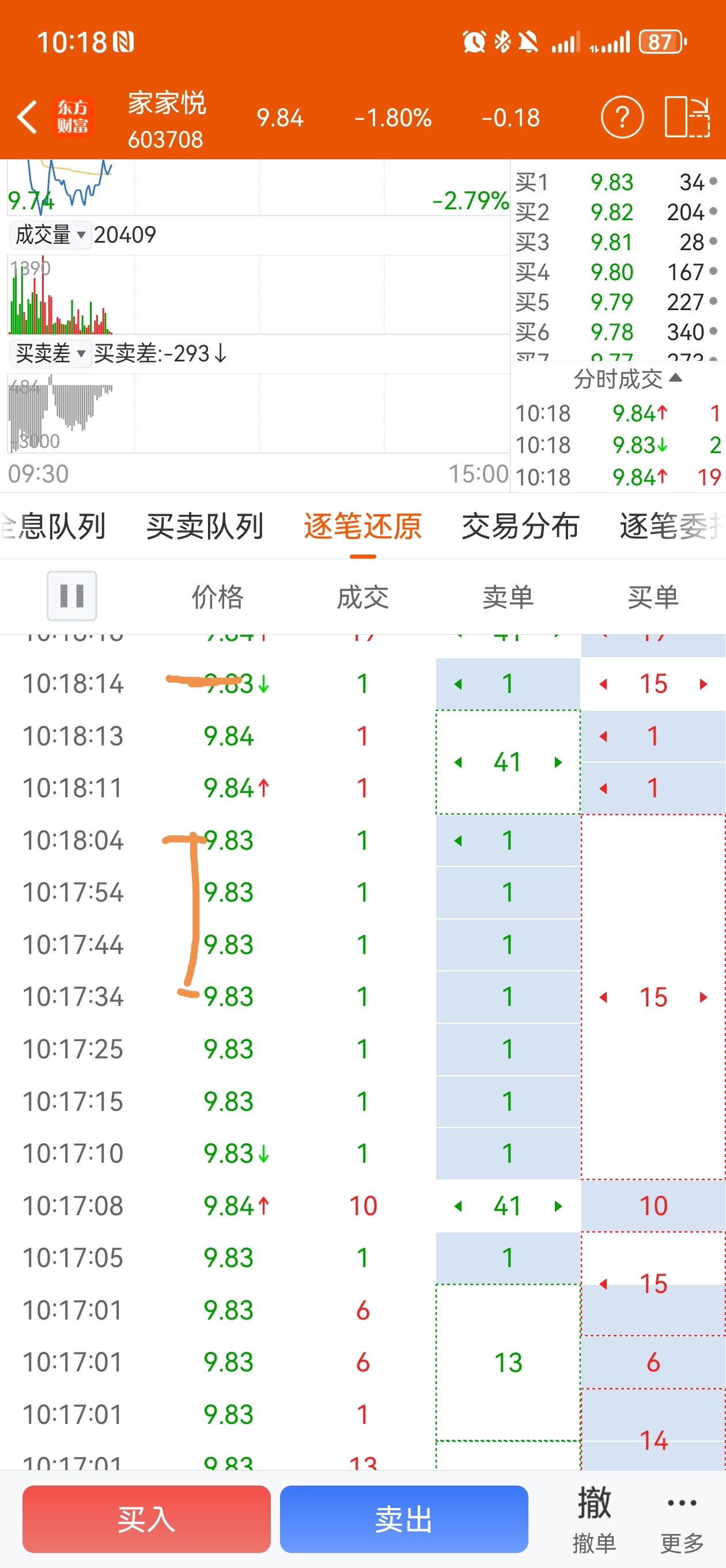 隔十秒一个一手的卖单