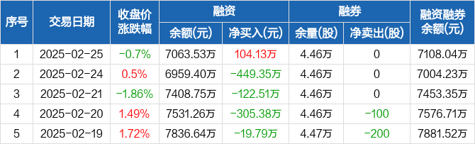 家家悦:融资净买入104.13万元,融资余额7063.53万元(02-25)