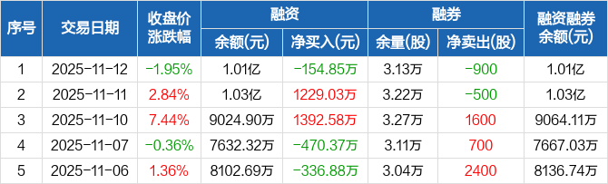 家家悦:融资净偿还154.85万元,融资余额1.01亿元(11-12)