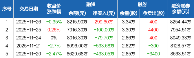 家家悦:融资净买入299.6万元,融资余额8215.9万元(11-26)