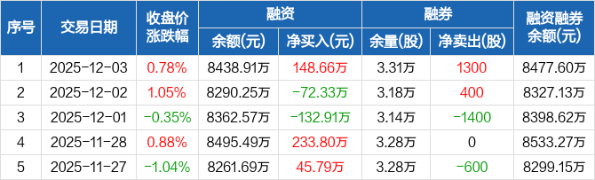 家家悦:融资净买入148.66万元,融资余额8438.91万元(12-03)