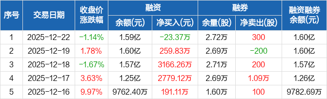 家家悦:融资净偿还23.37万元,融资余额1.59亿元(12-22)
