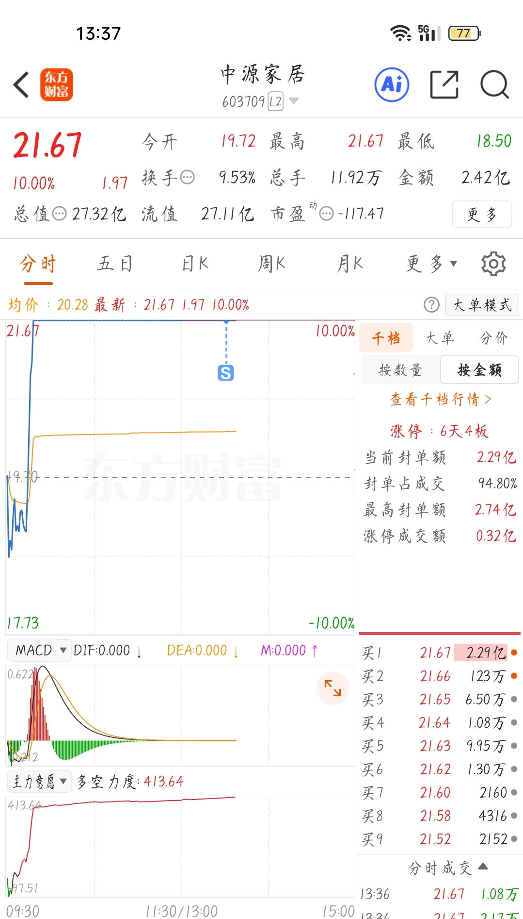 $中源家居(SH603709)$ 大盘往下,我有点怕,赚了15个点还是走吧,留下的发财