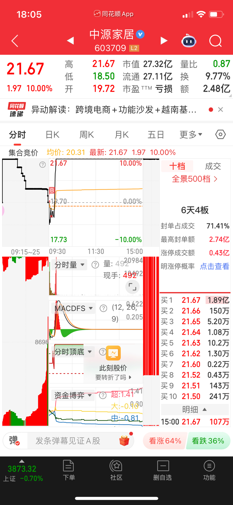 $中源家居(SH603709)$ 今天骄傲一下
